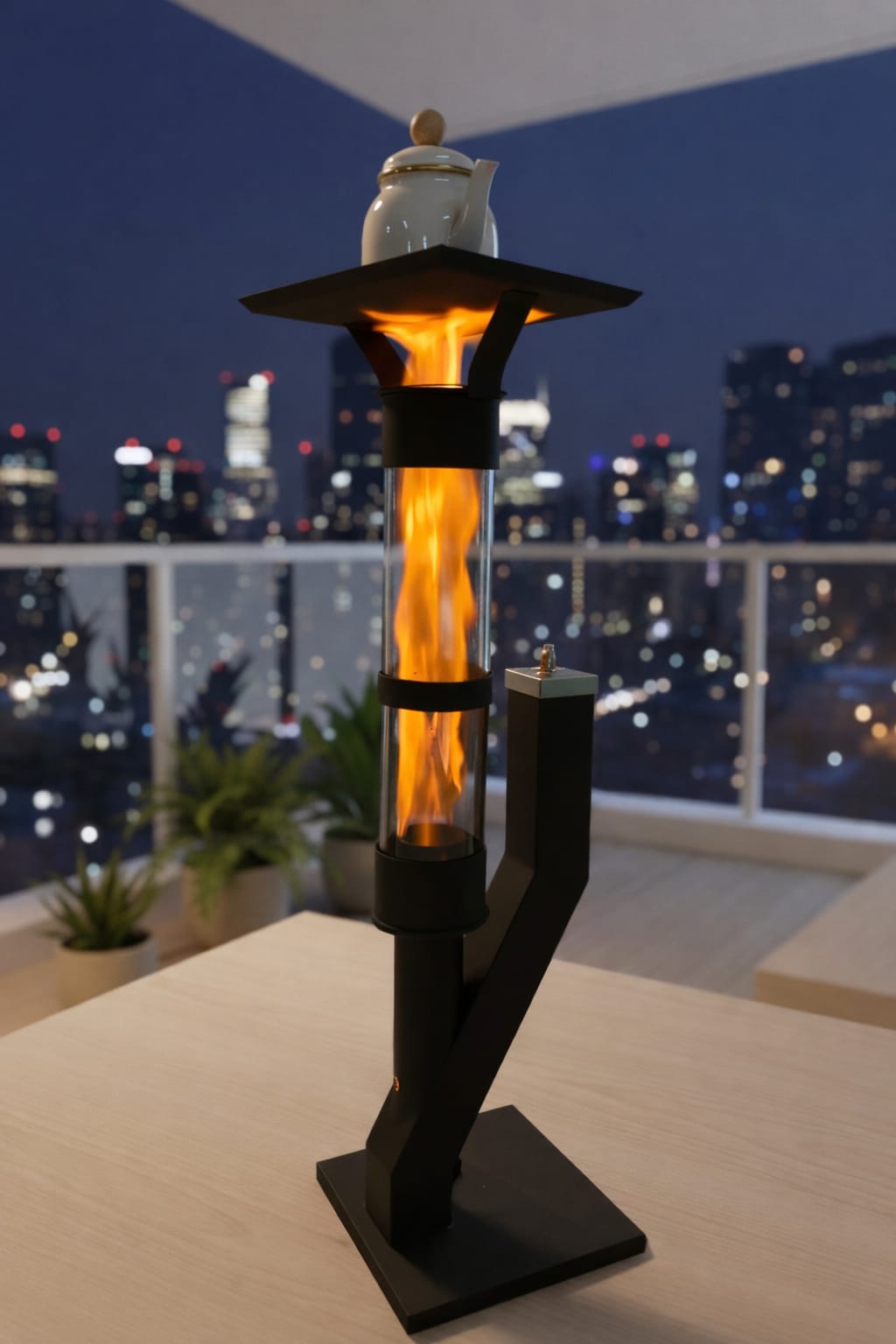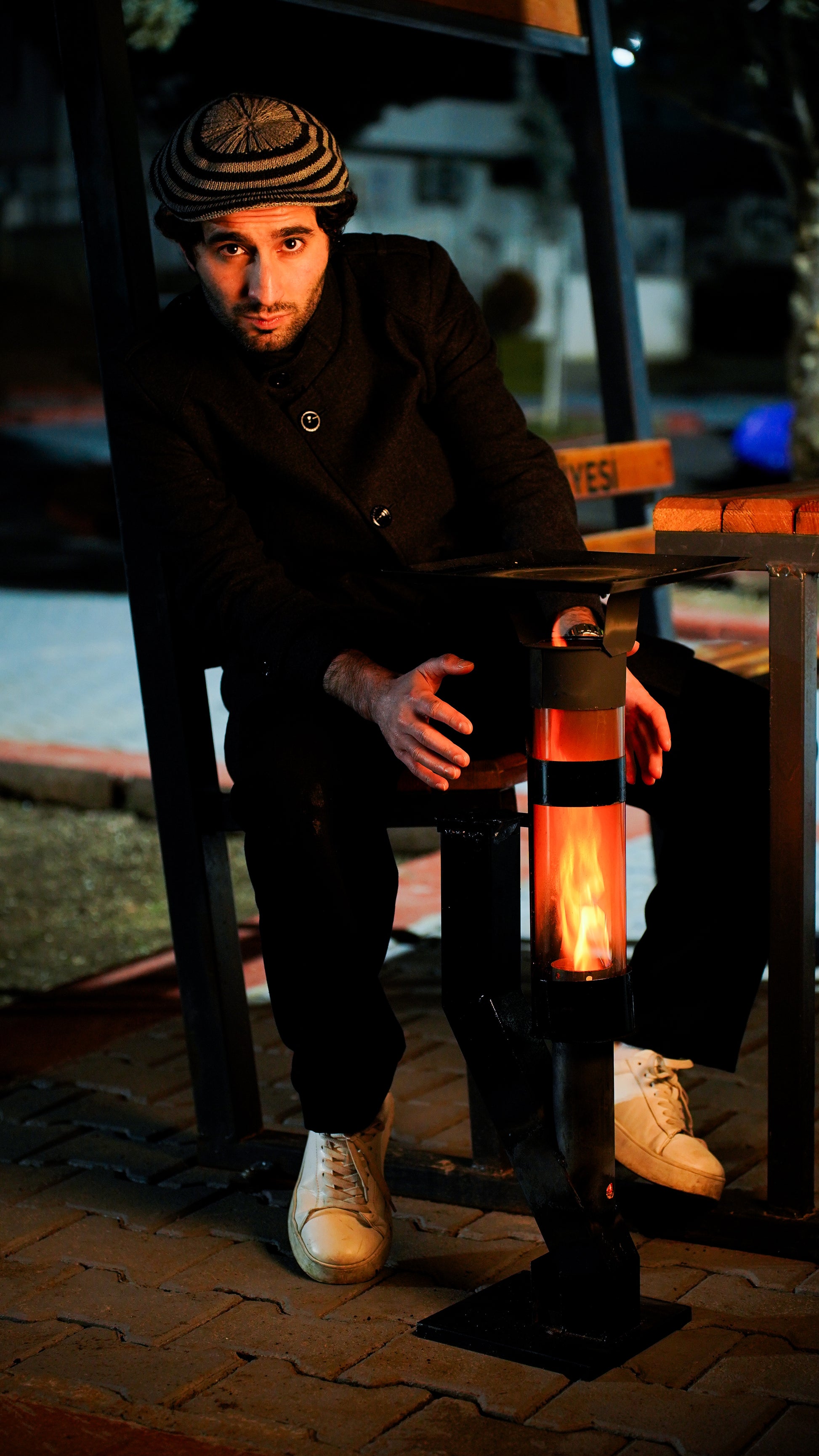 Sadece görsel değil, işlevsel. Dikey tasarımı ısıyı etrafa eşit yayarak açık havada bile konforlu bir sıcaklık yaratır.
